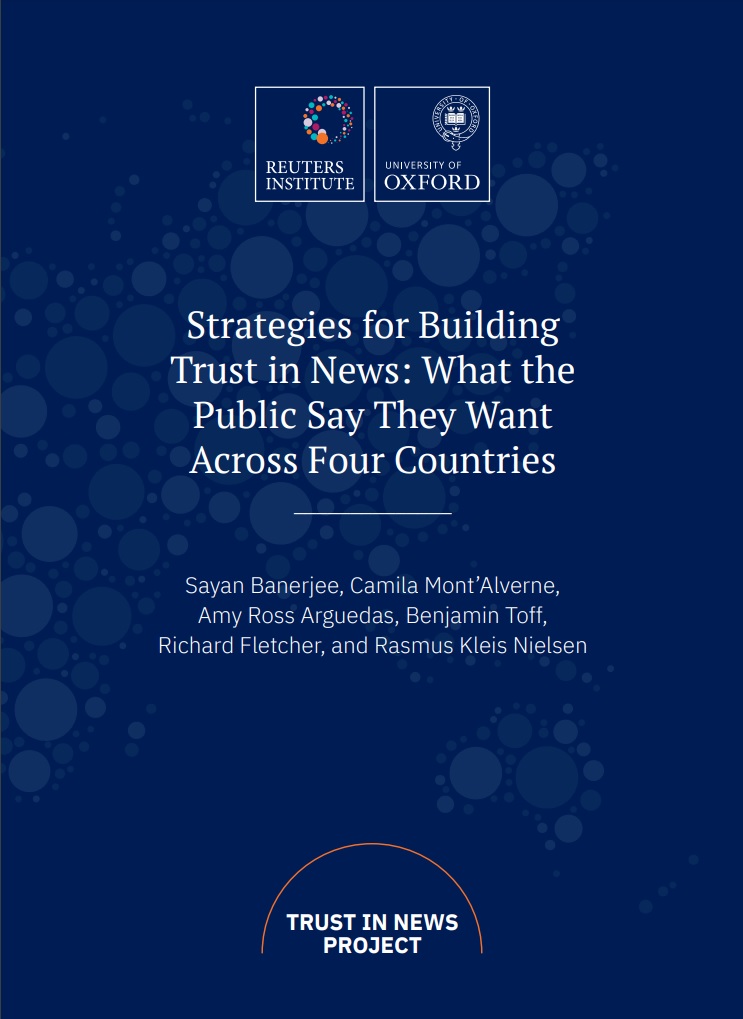 O projeto envolve pesquisa qualitativa e quantitativa e envolvimento contínuo com jornalistas e outras partes interessadas. O seu objetivo é compreender o que impulsiona a confiança do público em diferentes contextos e identificar recomendações baseadas em evidências para editores e plataformas.